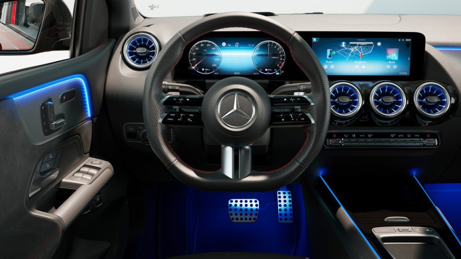 von 7: Die drei Benziner B 180, B 200 und B 220 4Matic sind künftig mit 48-Volt-Bordnetz und Starter-Generator ausgestattet, was mit einem Leistungsplus von 10 kW / 14 PS bringt.