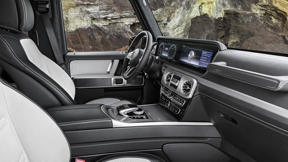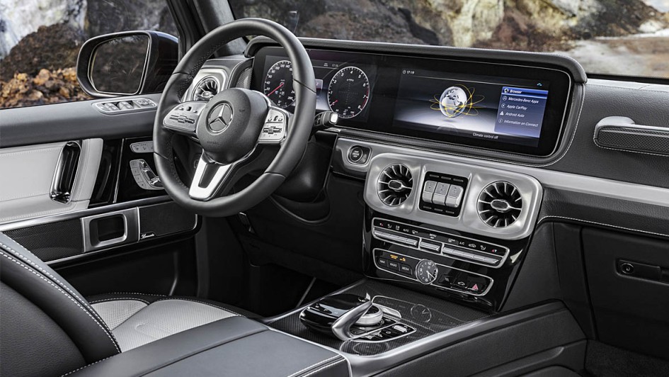 von 6: Wer will, kann für die G-Klasse zwar weiterhin ein Kombiinstrument mit klassischen Rundanzeigen bekommen, die meisten Käufer werden sich aber wahrscheinlich für das 12,3 Zoll große Display entscheiden.