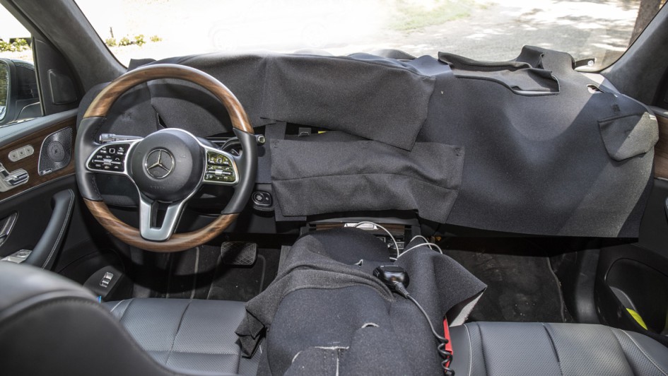 von 7: Auch wenn man noch nicht viel erkennt: Vorn gibt es ein Cinemascope-Cockpit im Stil der neuen A-Klasse samt dem Bediensystem MB UX und der Sprachsteuerung "Hey Mercedes".