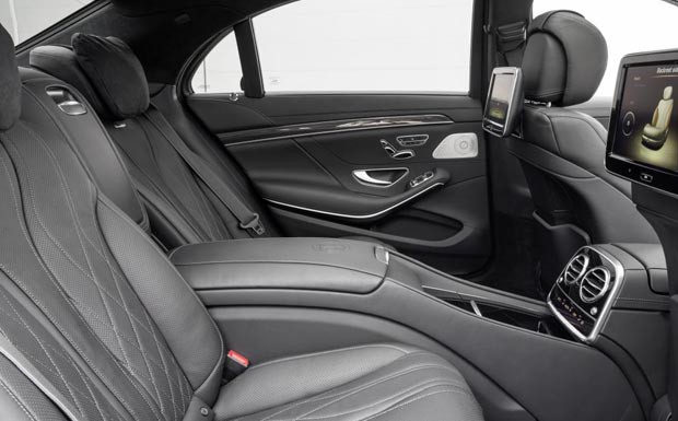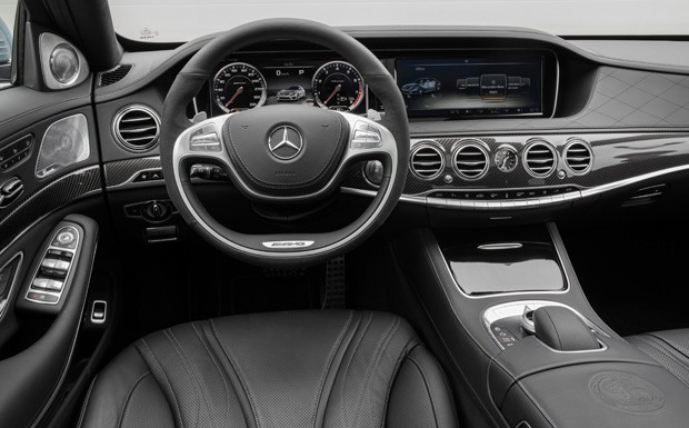 von 10: Im Innenraum des S 63 AMG unterstreichen AMG-Sportsitze in Nappa-Leder, das Sportlenkrad, Aluminium-Schaltpaddles und eine Sportpedalanlage aus gebürstetem Edelstahl die sportliche Note.