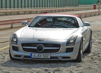 von 5: Der offene SLS AMG kann trotz Stoffverdeck bis zu 317 km/h schnell fahren.