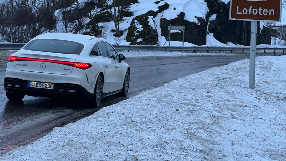 von 10: Knapp 108 kWh Batteriekapazität sollten die Sorgen vertreiben, 523 PS die Reisezeit zumindest in Deutschland reduzieren und der Allrad-Antrieb jenseits des Polarkreises die Spikes kompensieren.