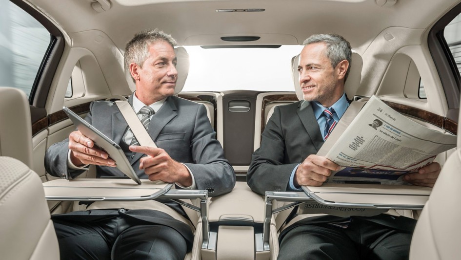 von 12: Das Interieur ist noch einmal verfeinert, optional sind Extras wie Klapptische zum Arbeiten oder eine Sprachverstärkung für die Unterhaltung mit dem Chauffeur erhältlich.