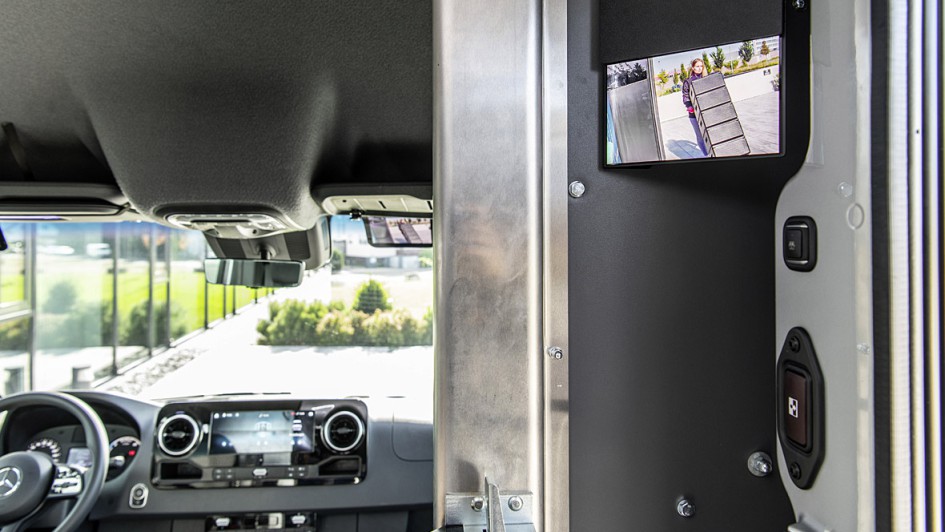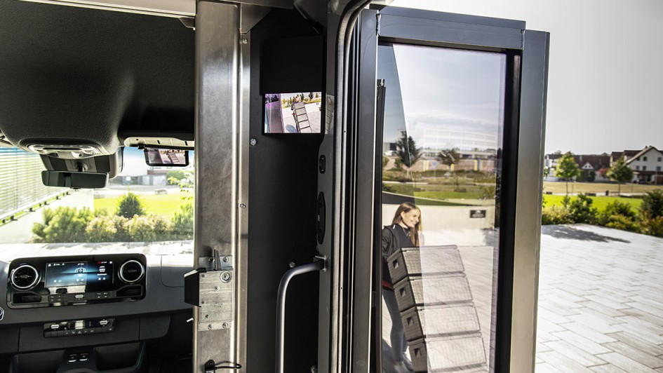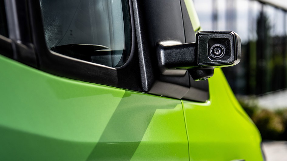 von 8: Eher praktischer Art ist der Verzicht auf herkömmliche Spiegel. Eine Reihe von Kameras haben die Umgebung des Autos im Blick und liefern gestochen scharfe Bilder auf OLED-Monitoren ins Fahrerhaus.