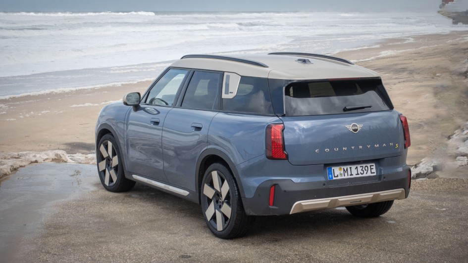 von 18: Die Seitenverkleidung mag cool aussehen, vor allem rechts behindert sie jedoch den Blick auf die Fahrradspur beim Abbiegen. Eigentlich ist die Übersichtlichkeit nach hinten im Mini Countryman SE All4 sehr ordentlich.
