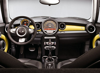von 10: Ein Erkennungsmerkmal des Mini E ist sein gelbes Logo mit dem stilisierten Netzstromstecker. Der Signet-Farbton findet u.a. auch beim Dekor Verwendung.