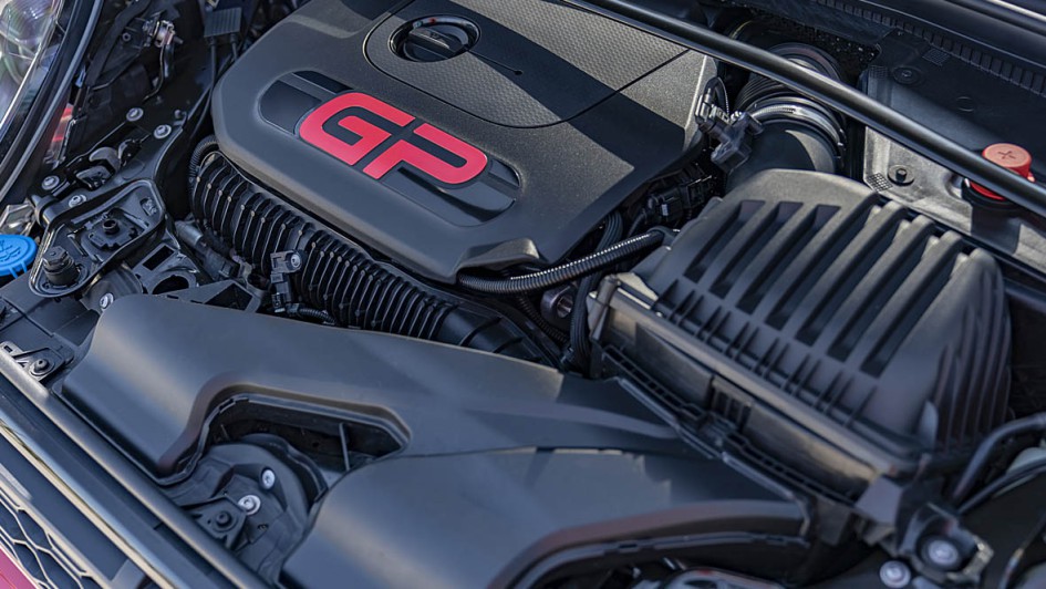 von 9: Mit seinen 225 kW / 306 PS und 450 Nm ist der 2,0 Liter große Turbo aus dem M140i der stärkste Motor, der je in einem Mini mit Straßenzulassung eingebaut wurde.