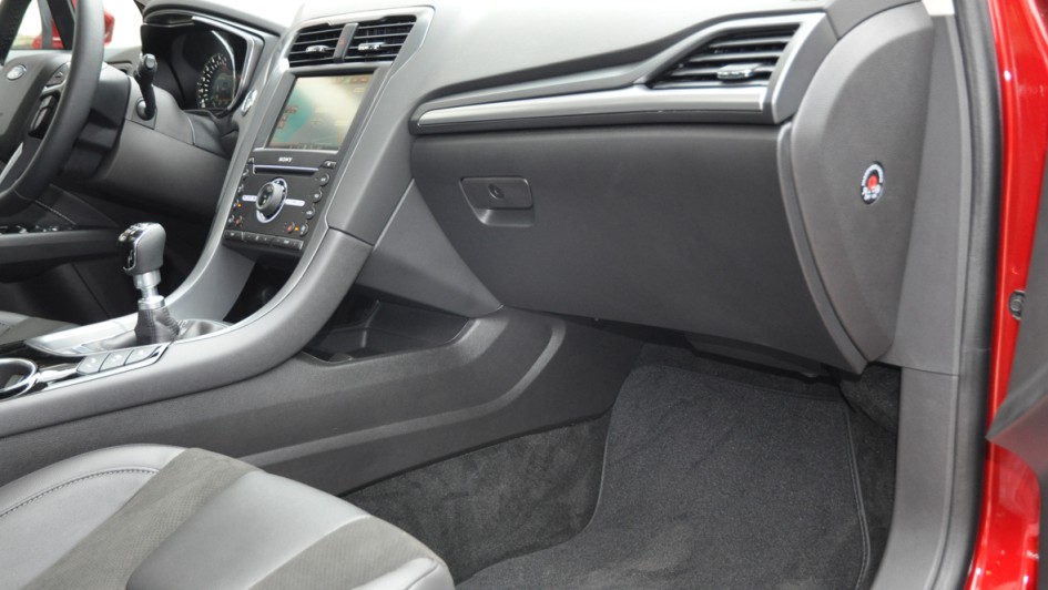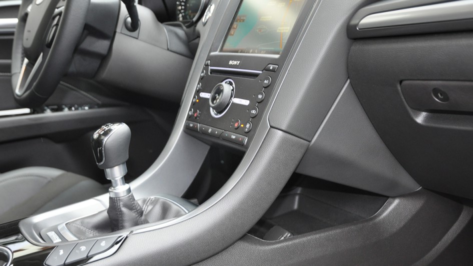 von 14: Die Mittelkonsole wirkt nun weniger wuchtig, was dem Gesamtkonzept entspricht. Denn der neue Mondeo wirkt aufgeräumt statt überfrachtet.