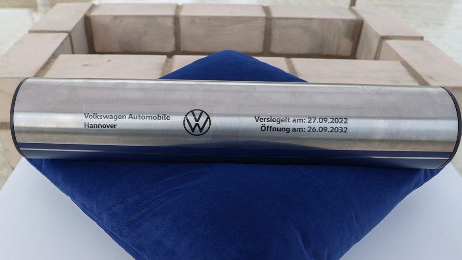 von 5: Mit einer Zeitkapsel wurde der jetzige Bauabschnitt dokumentiert. Diese enthielt neben tagesaktuellen Zeitungen unter anderem Fotos des bisherigen Standortes und wurde für nachfolgende Generationen hinterlegt.