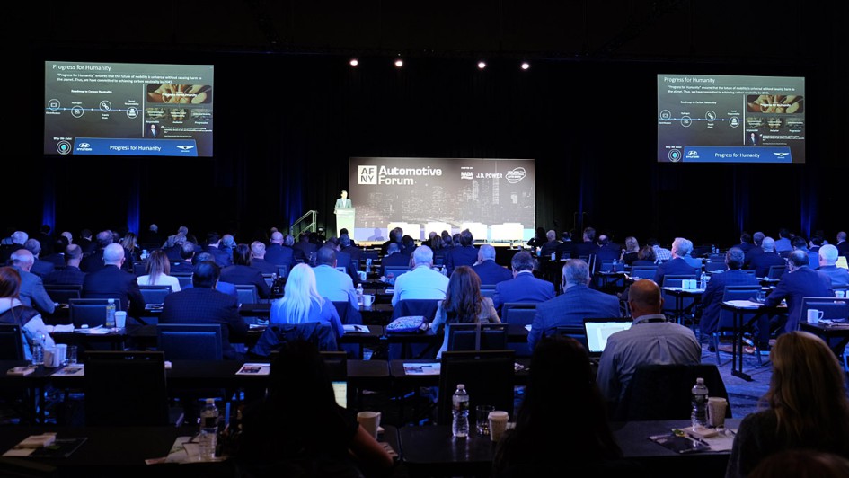 von 17: Automotive Forum Konferenz mit über 400 Teilnehmern aus Industrie und Handel. Das Motto "Dealers are All-In on EV", die Händler sind bei der Elektromobilität dabei.