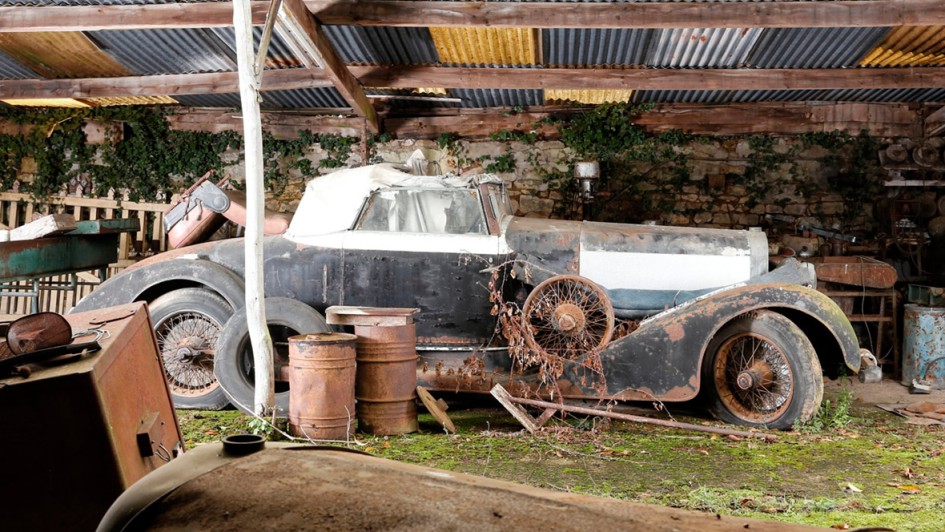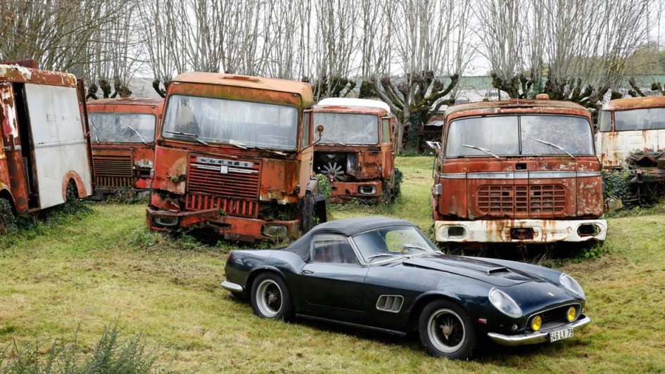 von 7: Versteckte Schätze: Unter einem Stapel Zeitschriften entdeckte das französische Auktionshaus Artcurial einen Ferrari 250 GT SWB California Spider, der einst Alain Delon gehörte. Daneben parkte ein Maserati A6G Gran Sport Frua.