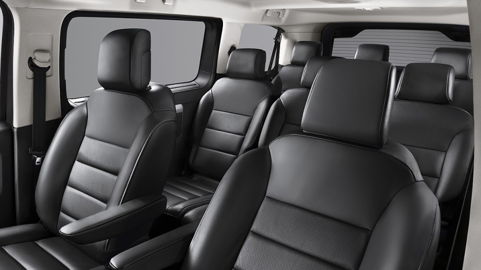 von 11: Komfort wird beim Zafira-e Life groß geschrieben: Opel bietet für alle Varianten des elektrischen Shuttle- und Reisemobils Ledersitze, die sich in Aluminiumschienen variabel verschieben lassen.