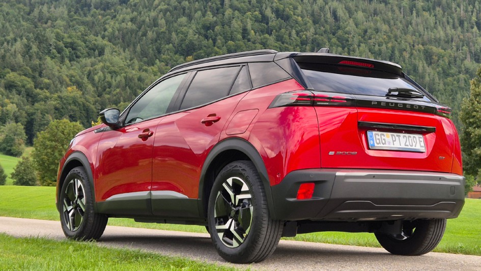 von 6: Besonders positiv fällt das Bremsverhalten auf: Im Vergleich zu manch anderem E-Fahrzeug verfügen die Bremsen über eine sehr gute Dosierbarkeit und ein sicheres Ansprechverhalten. Schnelle Kurven meistert der e-2008 sauber, nur bei Unebenheiten poltert er hörbar – statt der optionalen 17-Zoll-Bereifung wären 16 Zöller wohl besser gewesen.