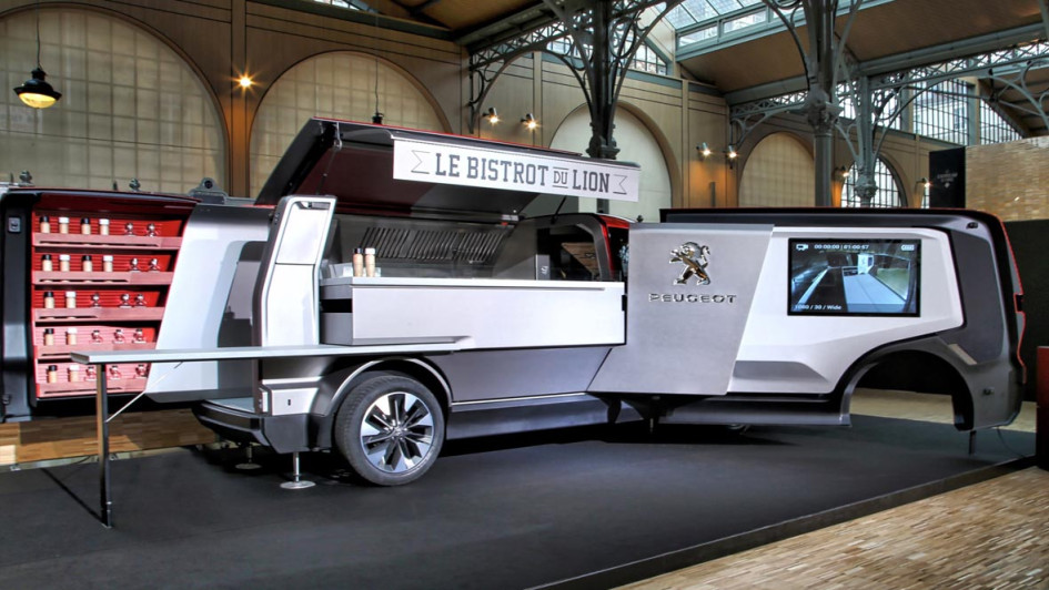 von 6: Der Peugeot Foodtruck wird das Produktportfolio nicht ergänzen. Das Mobil mit dem Namen "Le Bistrot du Lion" zeigt lediglich, wie mobile Gastronomie künftig funktionieren könnte.
