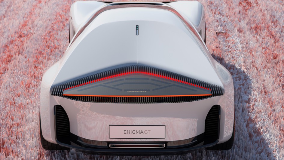 von 6: Angesichts der futuristischen Optik würde man einen reinen Elektroantrieb erwartet. Doch der Enigma GT hat einen V6, der allerdings mit Wasserstoff befeuert wird.