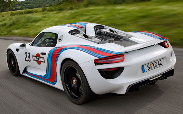 von 6: Der 918 Spyder kombiniert einen Hochleistungs-Verbrennungsmotor mit elektrischen Antrieben an Hinter- und Vorderachse, die Systemleistung aller drei Antriebe zusammen summiert sich auf 770 PS.