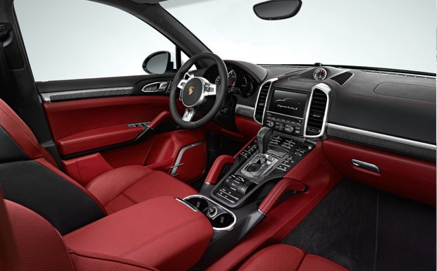 von 6: Der Porsche Cayenne Turbo S mit 550 PS fällt durch seinen schwarzen Hochglanzlack bei Lufteinlassgitter, Spiegelgehäuse und ähnlichen Details auf.