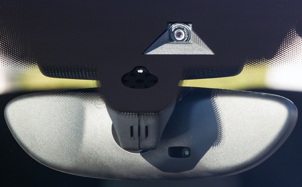 von 16: Vor der Kameralinse sitzt eine pyramidenförmige Streublende. Diese wird mit einer Heizfolie gewärmt, damit der Frontscheibenbereich vor der Linse bei Kälte nicht beschlägt.