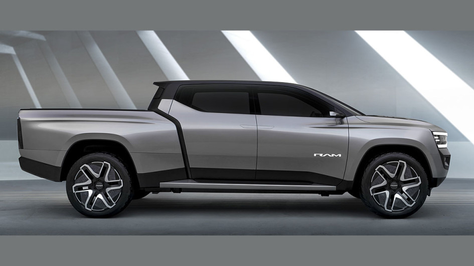 von 10: Der RAM 1500 Revolution BEV Concept Car verfügt unter anderem über gegenläufig öffnende Türen ohne B-Säule, eine herausnehmbare Mittelkonsole und erstmals dank zehn Zentimeter längerer Kabine über eine dritte Reihe mit Klappsitzen.