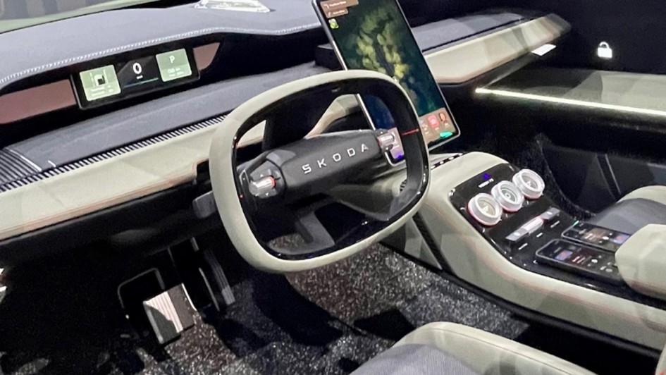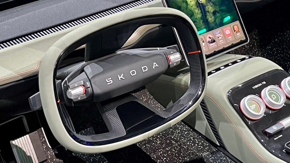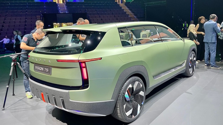 von 8: Mit dem Vision 7S zeigt Skoda nun aber nicht nur eines von drei neuen E-Modellen, die bis 2026 kommen werden, sondern auch seine neue Designsprache.