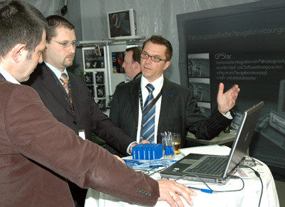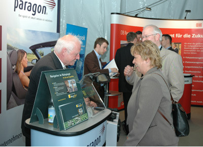von 12: Am Stand von paragon ist reger Betrieb. Flottenprofis lassen sich von Klaus Brand-Anheuser (links im Bild) den neuen Mirror Pilot demonstrieren.