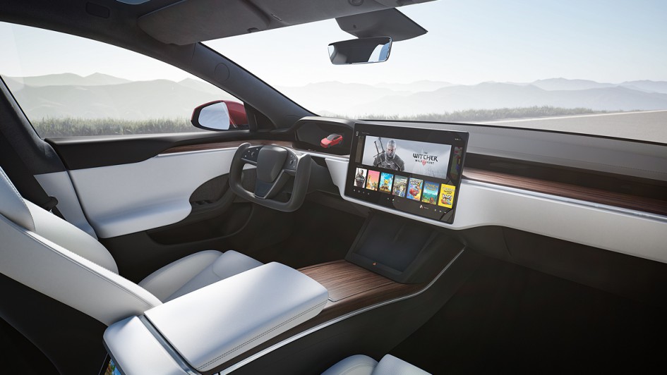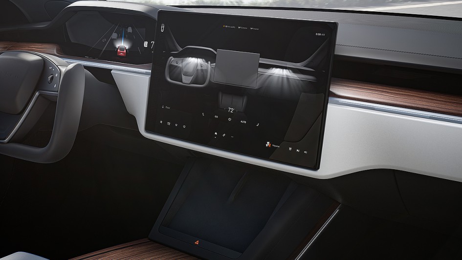 von 9: Im Zuge der "Plaid"-Einführung überarbeitet Tesla auch den Innenraum des normalen Model S. Künftig gibt es ein Lenkrad wie aus einem Flugzeug. Ob diese Form zulassungsfähig ist, steht noch auf einem anderen Blatt.