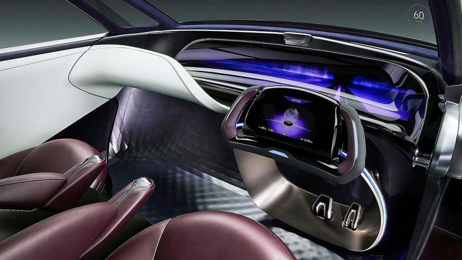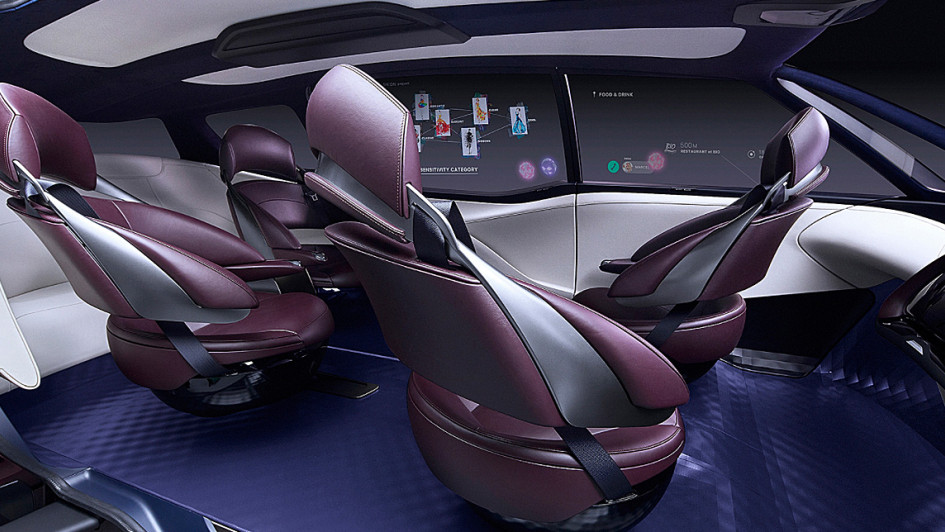von 6: Im Innern finden sich voluminöse, frei stehende Ledersessel, die sich individuell der Körperform anpassen. Der Fahrersitz lässt sich gegen die Fahrtrichtung drehen.