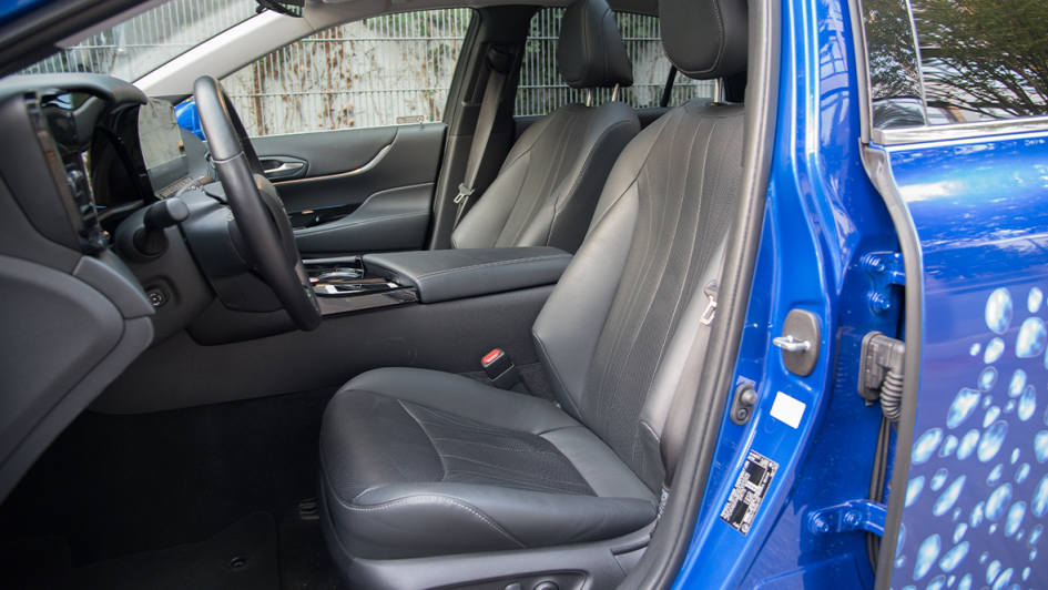 von 6: Der Toyota Mirai (heißt: Zukunft) ist ein Langstrecken-Gleiter. Der Fahrkomfort ist hervorragend, die Ruhe entspannend, die Versicherungseinstufung regt dafür auf.