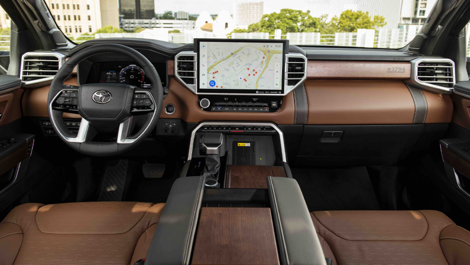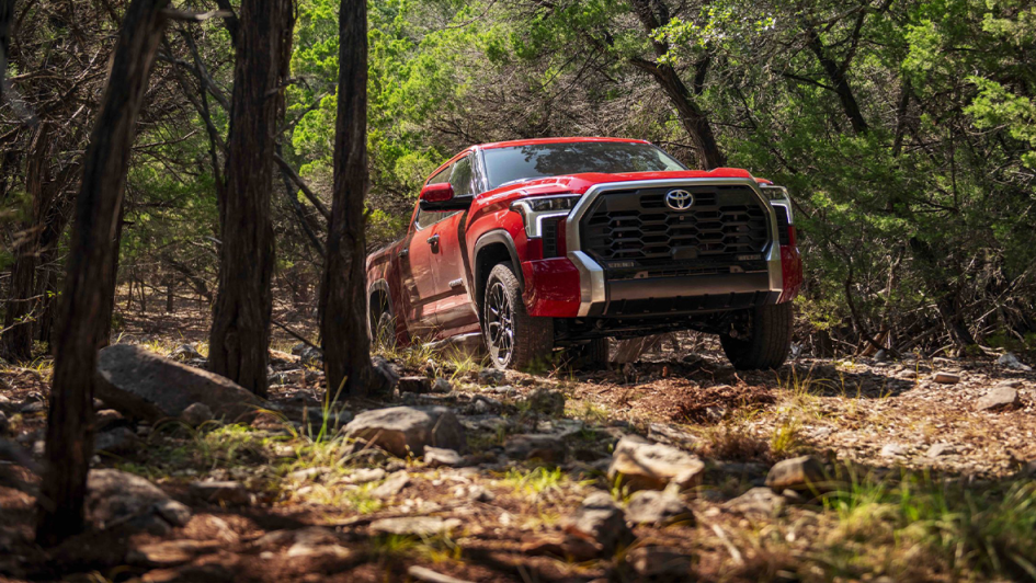 von 7: Zwischen den markanten Scheinwerfern hat der Tundra vor allem einen noch größeren Grill, den Toyota in einem halben Dutzend Varianten vom bitterbösen Darth Vader-Look bis zum chromfunkelnden Glanzstück anbietet.