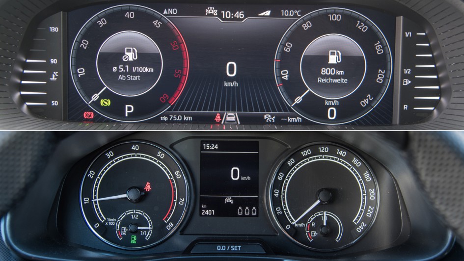 von 6: Das gut ablesbare Volldigital-Display (o.) gibt es nicht für die CNG-Version. Erdgasfahrer müssen sich mit dem schlechter ablesbaren Analog-Tacho begnügen.