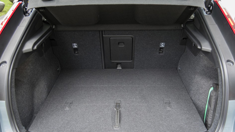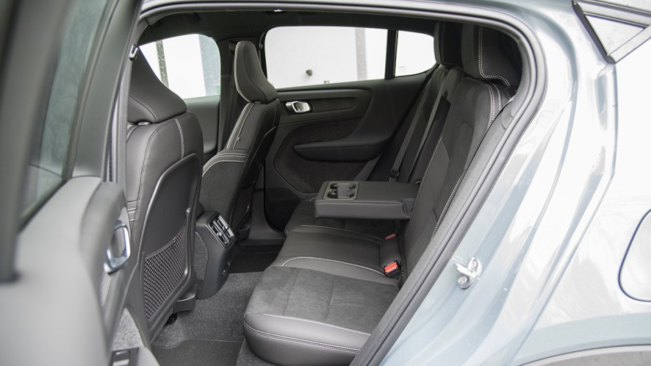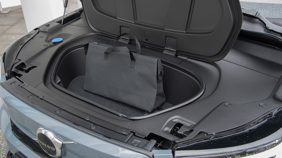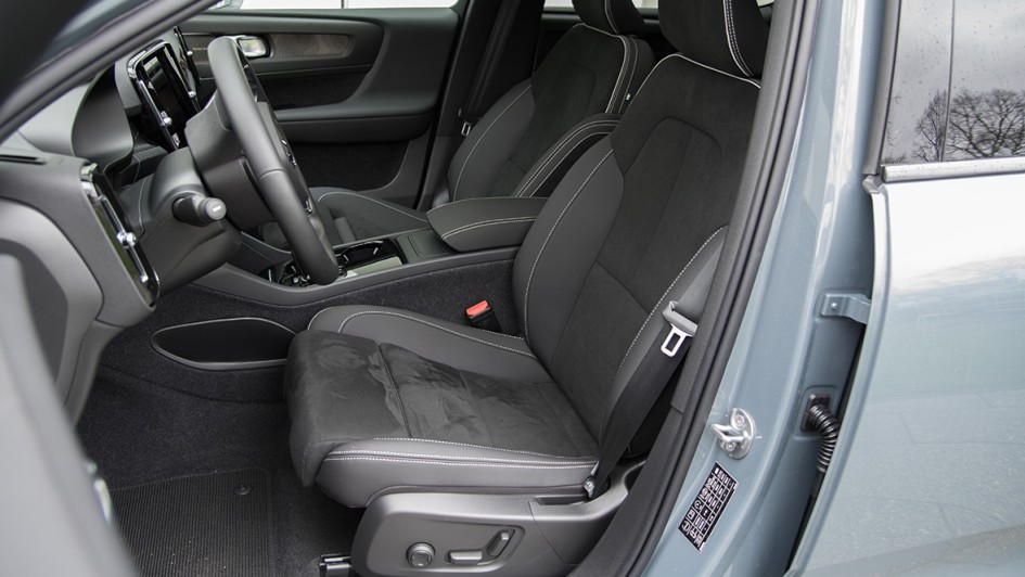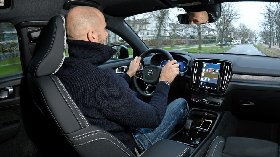 von 7: Hinter dem Logo sitzt der Frontradar. Dieser ist beheizt, um auch bei Schnee zuverlässiger zu funktionieren. Die Assistenzsystem im C40 sind für den Fahrer stets präsent und spürbar – positiv wie negativ.