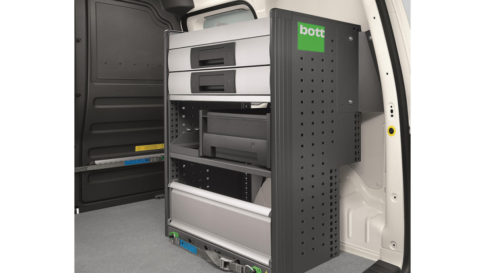 von 4: Das Grundpaket enthält neben dem "Bott Vario"-Fußboden und den Zurrschienen an der Trennwand ein Modul auf der Fahrerseite mit Stauraum und weiteren Zurrpunkten.
