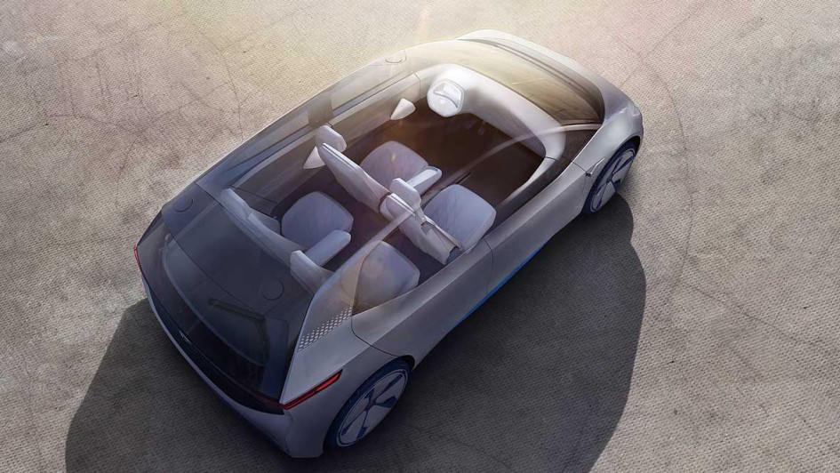 von 9: Das Interieur des I.D. ist sehr luftig gestaltet und mit einem Lenkrad, das in das Cockpit einfährt, bereits für das autonome Fahren gerüstet.