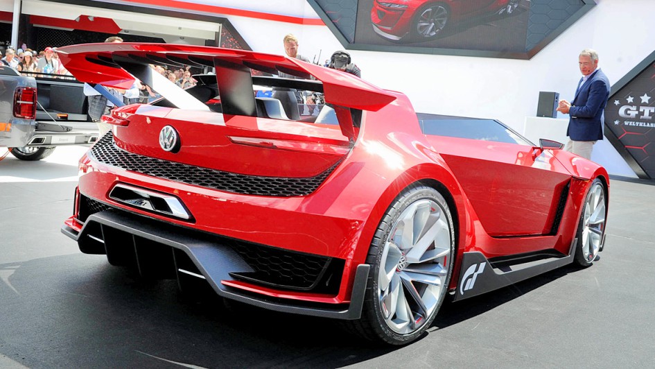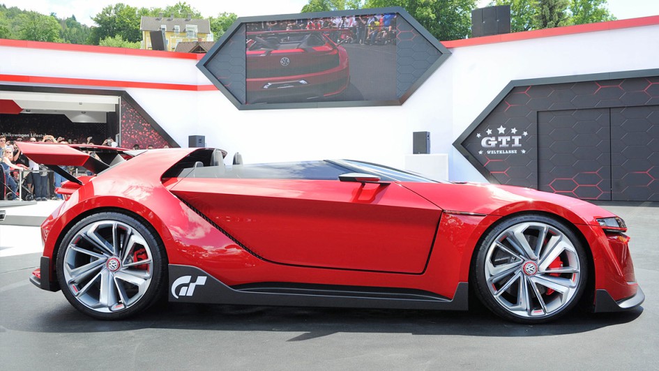 von 6: Die nun physisch präsentierte Studie basiert auf einem rein virtuellen Modell: einem Rennwagen, den VW speziell für das Videospiel "Gran Turismo 6" entwickelt hatte.