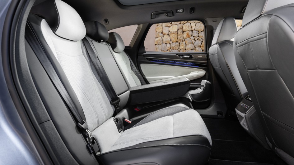 von 15: Hinten gibt es sehr viel Platz. Dennoch ist die Sitzposition für Langbeiner etwas froschartig, da die Batterien Platz im Unterboden benötigen und die Sitztiefe damit beschränken.