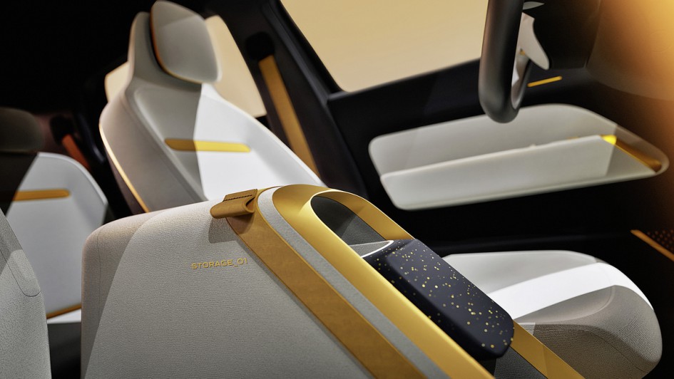 von 17: Die Mittelkonsole dient in der Studie nicht nur als klassische Mittelarmlehne für Fahrer und Beifahrer, sondern ist – da auf einer Schiene bis in den Fond verschiebbar – ein multifunktionales Tool für alle Passagiere.