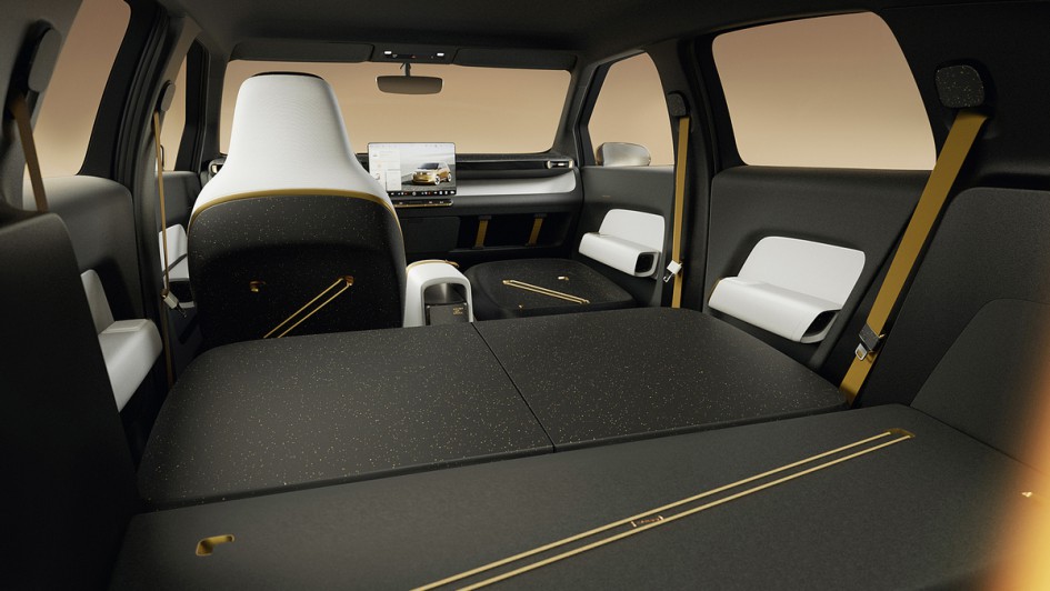 von 17: Mittig thront das zentrale Touchdisplay des Infotainmentsystems. Auch witzig: ein kleiner und beleuchteter Bluetooth-Lautsprecher zwischen Fahrer und Beifahrer, den man mitnehmen kann.