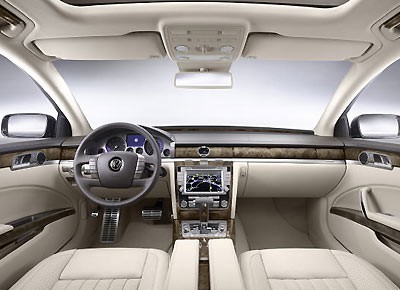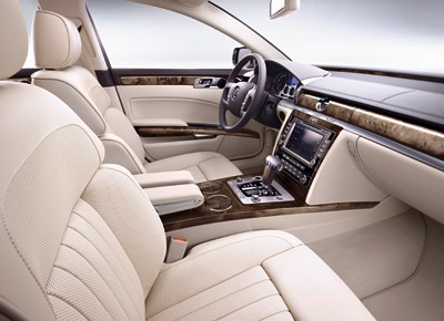 von 7: Innenraum des VW-Flaggschiffs bietet VW ein neues Multifunktionslenkrad und das Radio-Navigationssystem RNS 810 mit einer 30 Gigabyte-Festplatte und Internetzugriff an.