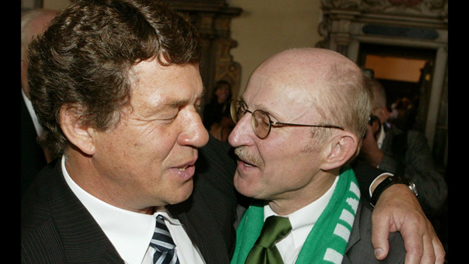 von 7: Traumduo des deutschen Fußballs: Manager-Legende Lemke mit Trainer-Legende Otto Rehhagel. Sie feierten mit dem SV Werder Bremen die größten sportlichen Erfolge der Vereinsgeschichte.