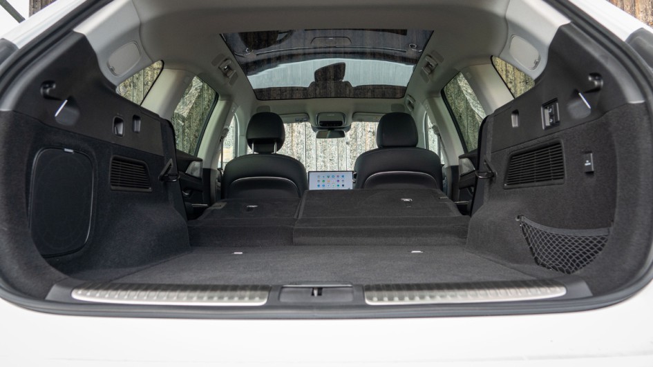 von 30: Wer alles umklappt, kann knapp 1.600 Liter in den Xpeng G9 einladen. Ein Rollo zum Verdunkeln des Glasdachs gibt es nicht, das Dach lässt sich nicht öffnen.
