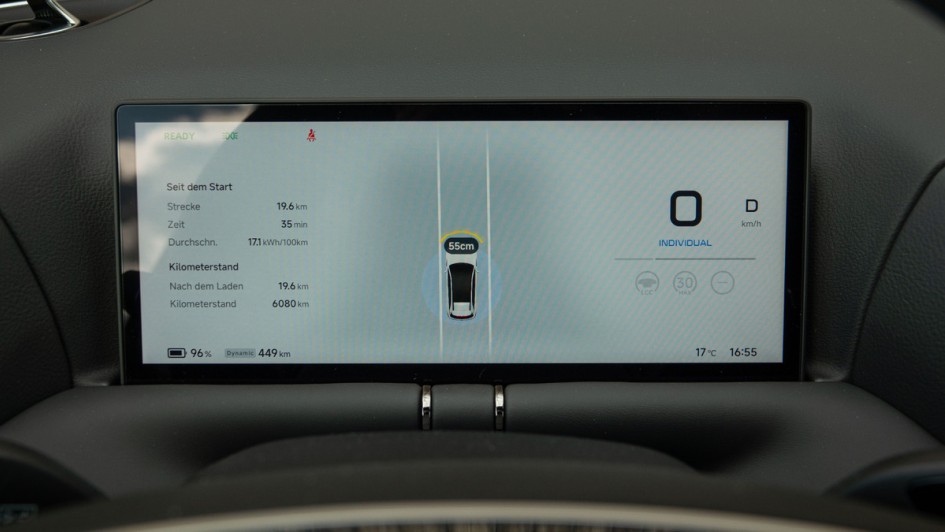 von 30: Der "mitfahrende" G9 in der Displaymitte ist völlig überflüssig und die wichtigen Informationen viel zu klein visualisiert. Da sollten sich mit kommenden Updates (Over The Air, OTA) auch Prioritäten verschieben.