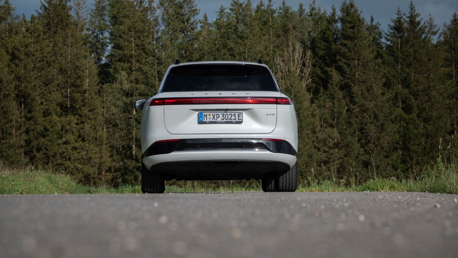 von 30: An das Logo wird man sich gewöhnen und den Unterschied zum Polestar-Logo irgendwann erkennen. Das durchgängige Leuchtband hat der Xpeng G9 – wie viele andere – ebenfalls an Front und Heck.