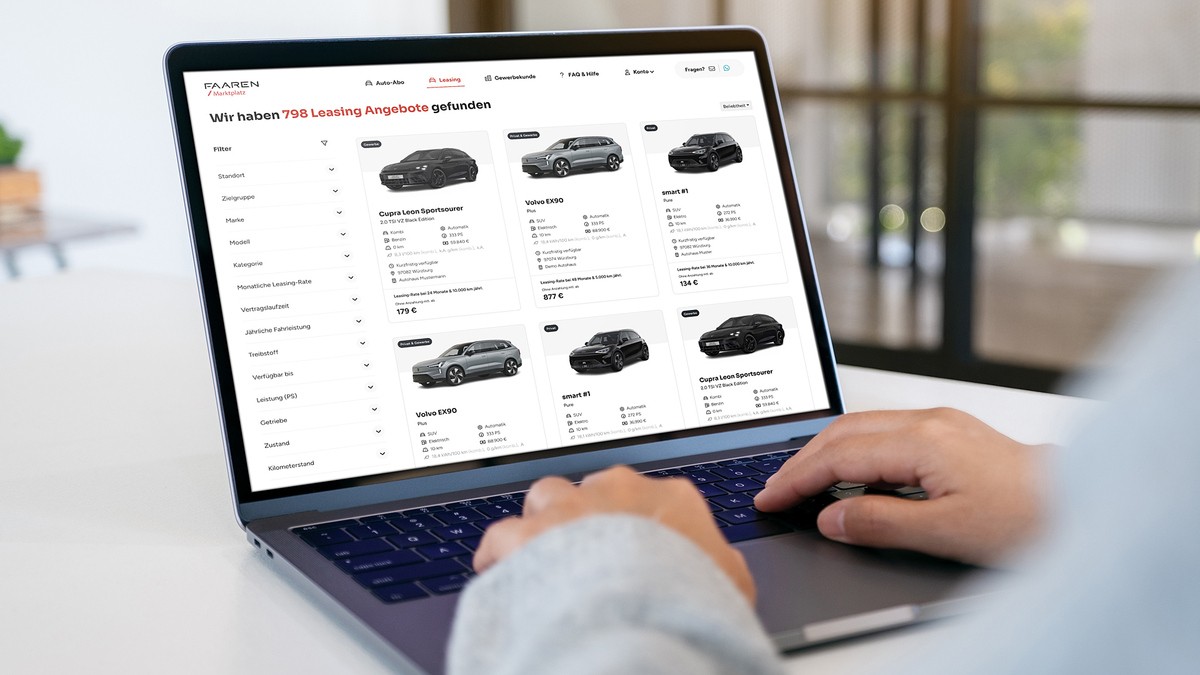 Die Faaren Group integriert erstmals Leasingangebote in ihren Marktplatz. Händler und Mobilitätsanbieter können Fahrzeuge ab sofort sowohl im Auto‑Abo als auch im Leasing über eine zentrale Plattform anbieten. Das Würzburger Softwareunternehmen reagiert damit auf die zunehmende Annäherung beider Nutzungsmodelle und treibt seine Positionierung in Richtung einer ganzheitlichen digitalen Mobilitätsplattform voran.