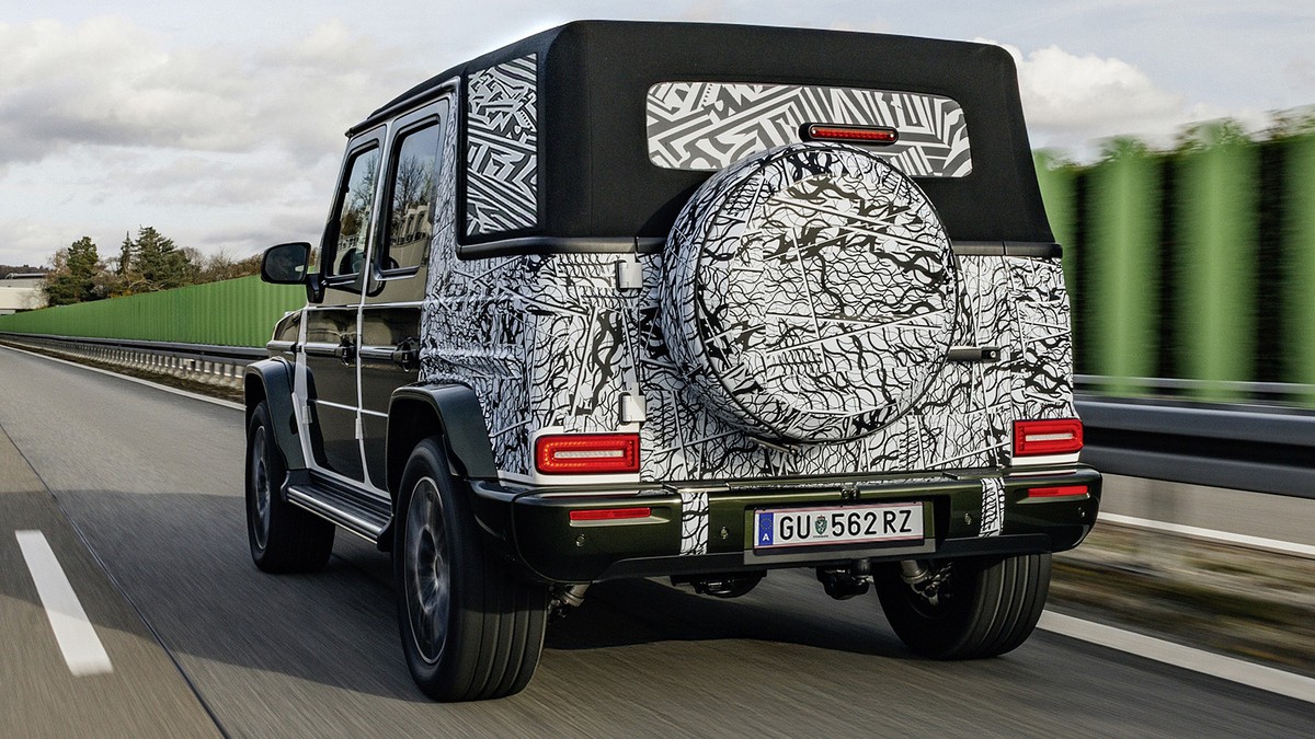 Bereits im September hatte Mercedes die Rückkehr des G-Klasse-Cabriolets angekündigt. Nun zeigt der Hersteller erste Bilder eines mit Folie getarnten Prototyps. Dabei wird sichtbar, dass die Neuauflage im Gegensatz zur zwischen 1979 und 2013 produzierten, stets zweitürigen Version vier Türen bieten wird. Die Oberfläche des Verdecks legt eine klassische Stofflösung nahe, die allerdings deutlich straffer anzuliegen scheint als beim historischen Vorbild.