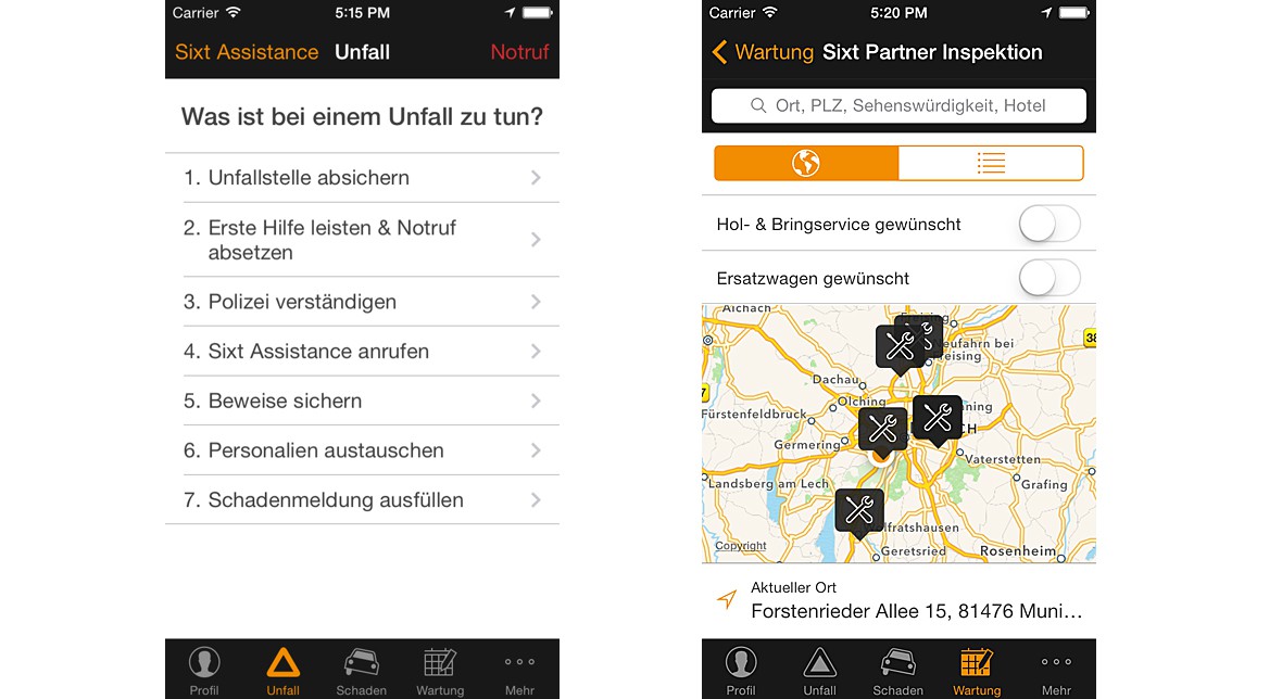 Laut Leasinggesellschaft bietet die App folgende Funktionen: